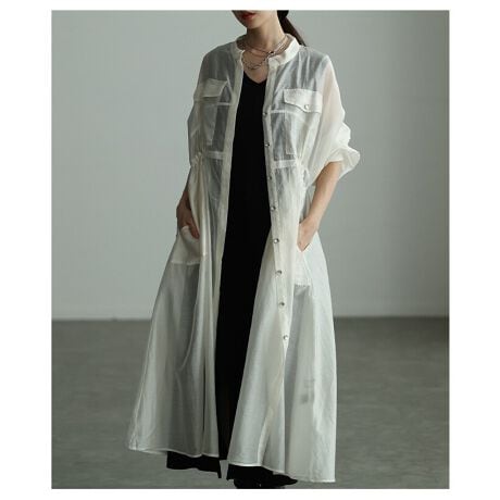 マルイウェブチャネル   /   サワアラモード   /   ワンピースドレス   /   ワンピース   /   【ワンピース】 シャツ ブラウス シアー 長袖 ロング ドロスト ポケット レイヤード アイボリー