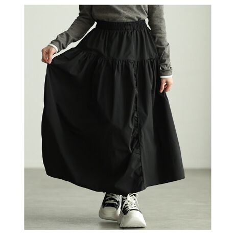 マルイウェブチャネル   /   サワアラモード   /   すべてのスカート   /   スカート   /   【スカート】 ギャザー 変形 切り替え ウエストゴム アシンメトリー ロング ブラック グレー 無地