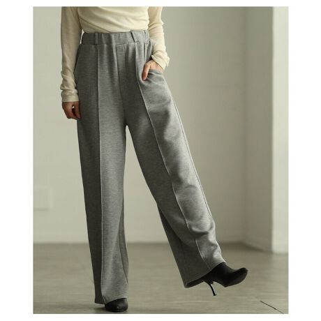 【パンツ】 ワイド ロング ハイウエスト ウエストゴム ポケット センターシーム アイボリー グレー