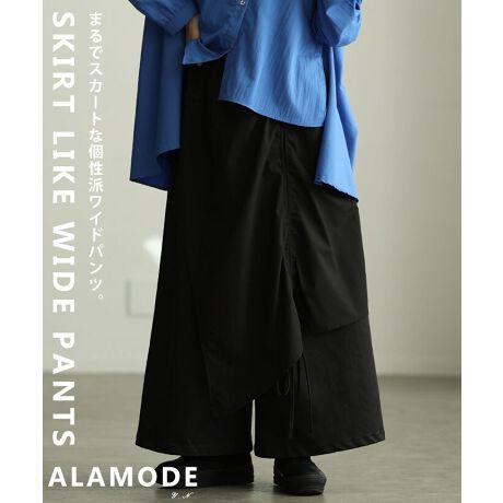 スカートのように生地が重なる、個性派デザインの変形ワイドパンツ。動くたびに表情が変わり、穿くだけで存在感のあるスタイルに。ドローコードを調整すればシルエットの変化も楽しめ、一味違う着こなしに☆