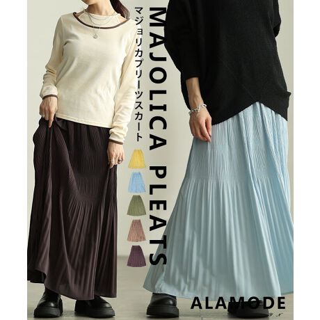 ヒダに変化をつけたマジョリカプリーツが、軽やかでふんわりとした表情を生むスカート。フレアシルエットで動きやすく、春夏のコーデにぴったりです。気分に合わせて選べる5色展開も嬉しいポイント!