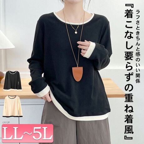 【大きいサイズ】 フェイクレイヤードバイカラートップス 大きいサイズ レディース トップス