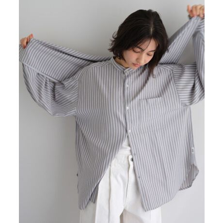 レーヨン ストライプ バンドカラー 長袖 シャツ ANME アンメ