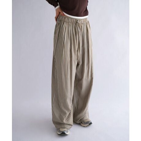 レーヨン ストライプ イージー ワイド パンツ ANME アンメ