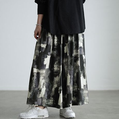 3種のデザインから選べるリラックス感漂うワイドパンツは、トレンド感のあるシルエットと、モード感引き立つプリント柄が魅力的。艶っぽさのある質感がカジュアル過ぎず、高見え感をプラス。シンプルなトップスに合わせるだけで、大人モードなスタイリングが完成します。満足感のあるワイド幅のレングスが下半身を丸ごと体型カバー。ウエスト部分は、フロントがフラットになっている後ろゴム仕様でインコーデ時もすっきり綺麗見え。ウエスト部分にたっぷりのギャザーを入れることで美しいドレープを描き、奥行きあるシルエットを演出します。
