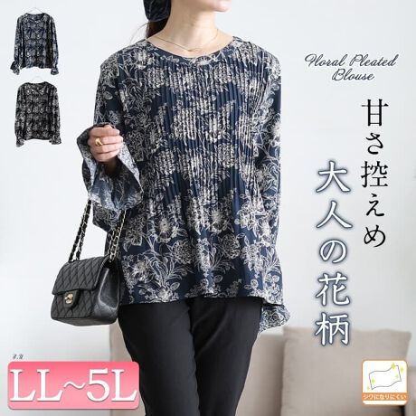 【大きいサイズ】 花柄消しプリーツキャンディスリーブブラウス 大きいサイズ レディース トップス