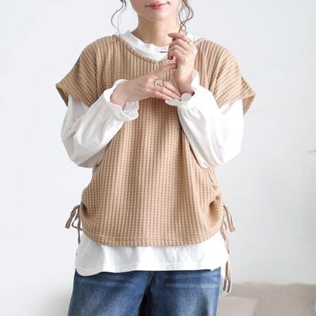 【大きいサイズ】 脇シャーリングベスト&キャンディスリーブロンT2点セット 大きいサイズレディース