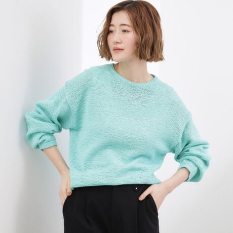 表情のあるテープヤーン素材を使用したプルオーバーニットです。