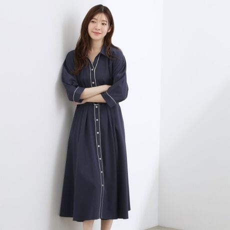 配色ラインで垢抜け 美シルエットシャツワンピース