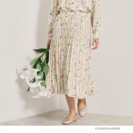 華やかさのあるアコーディオンプリーツデザインで、裾に向かってプリーツを絶妙に消すことで