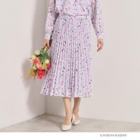 華やかさのあるアコーディオンプリーツデザインで、裾に向かってプリーツを絶妙に消すことで