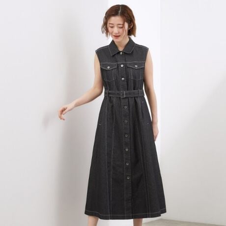 デニムジャケットのデザインディテールを取り入れた、スリーブレスワンピース。