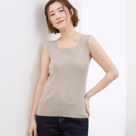 前後でスクエアネックの高さを変えられるデザインが特徴のニットタンク。