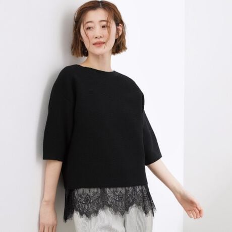 立体的な袖が映える、軽やかクロップドニット
