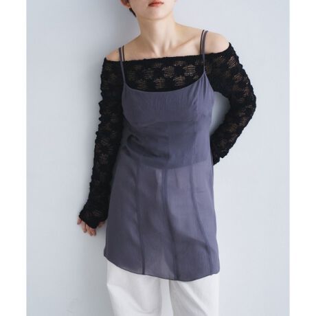 透け感のあるデザインが、女性らしさを引き立て、重ね着でも一枚でもさらっと着こなせます。