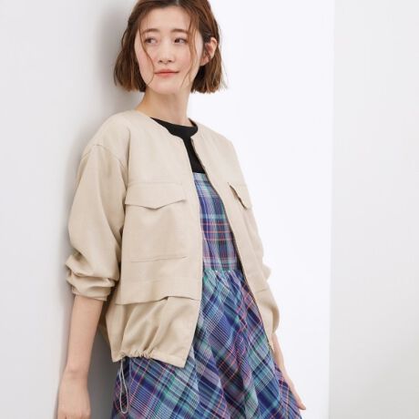 ノーカラーデザインですっきりと仕上げた、上品な印象のブルゾンです。