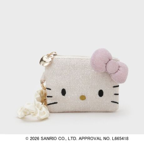 ハローキティのアイコンであるリボンを立体的に表現したスクエア型ポーチ。