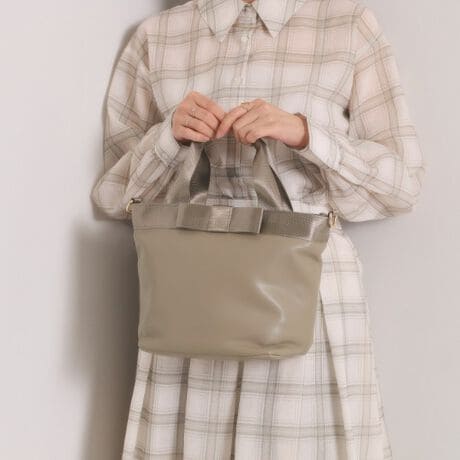 すっきりしたフォルムと光沢のあるリボンテープ、ゴールド金具の組み合わせが女性らしさを程よく引き立て、通勤からおでかけまでエレガントに寄り添います。