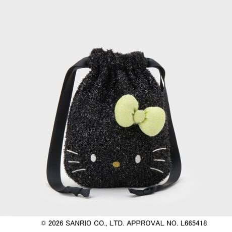 立体的なリボンが可愛らしい、ハローキティのお顔をあしらった巾着ポーチ。
