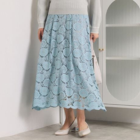 ボトムをレーススカートにチェンジするだけで、秋冬のコーディネートもぐっと春らしく鮮度が出ます♪