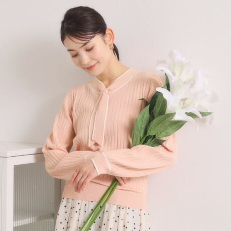 クラシカルムードな配色ボウタイニット。