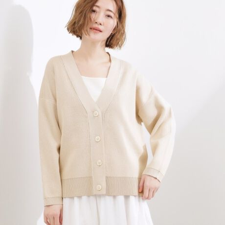 接結編みで仕立てた、ほどよい厚みのオーバーサイズVネックカーディガンです。