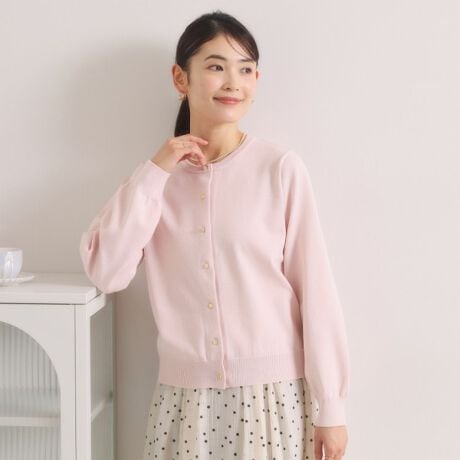 ベーシックなクルーカーディガンは季節の変わり目に持っておきたいアイテム。