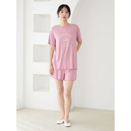 メローのディテールを添えて、品の良い可愛らしさを表現した柔らかなレーヨンロゴシリーズです。左腰にワンポイントでロゴグラフィックをプリントした、ひんやりとした肌触りが気持ち良いショートパンツ。裾にメローを入れ、揺れ感が可愛いフェミニンなシルエットに仕上げました。両脇にポケットも付いています。色はベーシックな杢グレーと濃色のピンク、ネイビーをご用意。同シリーズのTシャツと組み合わせてギフトにもおすすめです。