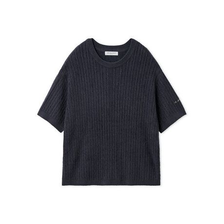 薄手でさらっと着用していただける’スムーズィーライト’を使用した、春から夏にかけてお楽しみいただけるアランニットシリーズです。ベーシックなネイビーカラーの半袖プルオーバーは、編み柄の風合いがおしゃれな1枚。余計な装飾感がないのでお手持ちのボトムにも合わせやすく、ワンマイルのお出かけにもおすすめです。同シリーズのハーフパンツと合わせてお楽しみください。