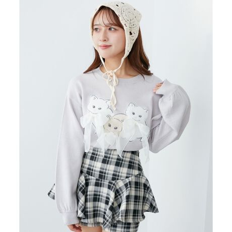 3匹の子猫ちゃんに立体リボンをあしらった、思わずときめくニット。