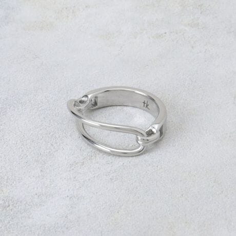 デザイン性の高いチェーンをモチーフに、リングへと落とし込んだデザイン。