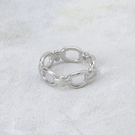 デザイン性の高いチェーンをモチーフに、リングへと落とし込んだデザイン。