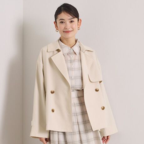 ジャケット感覚でさらりと軽く羽織りやすいショートトレンチコート。