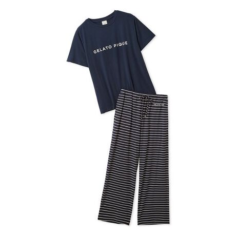 <b>【レーヨンロゴT&細ピッチボーダーのロングパンツセット】</b>