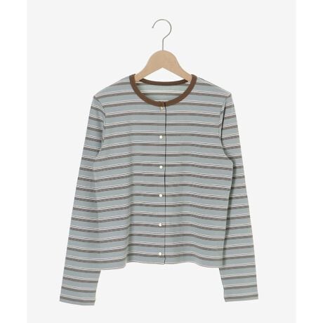 シンプルなスタイルに彩りを添える、マルチボーダーリブカーデ。