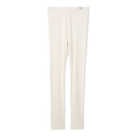 お肌に触れるとしっとりとした優しいフィット感のある、モイストリブ素材を使用したレギンスです。ワンピースや長め丈のニットなど、様々なコーディネートのインナーに合わせやすく、締め付けすぎないシルエット。ウエストにはさりげなくトレンドを感じさせる、オリジナルのピスネームを付けています。色はオフホワイトとピンク、ブルーの3色展開。同シリーズのタンクトップと合わせるのもおすすめです。