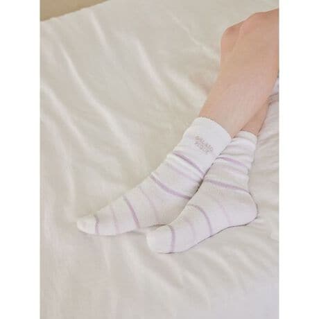 とろけるような肌触りで人気の’スムーズィー’に、ご家庭の洗濯機でお手入れ可能なウォッシャブル機能を備えた人気シリーズです。気分がぱっと明るくなりそうな、カラフルなボーダー柄のソックス。これから暖かくなる時期の足元にちょうど良い厚みです。色はミックス、ブルー、ラベンダーの3色をご用意しました。同シリーズのルームウェアや雑貨と合わせたり、ギフトにもおすすめです。