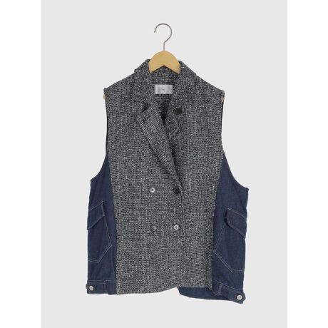 ツイード×デニムの異素材がミックスされたノースリーブジャケット。