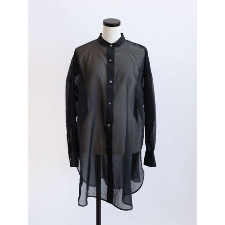 シアーの抜け感とシワの風合いが柔らかな印象のノーカラーシャツ。パープルはまるでオーロラのような幻想的で美しい色味をお楽しみいただけます。ヒップが隠れるロング丈が魅力で、リラクシーな着用感。フロントに配された貝釦は洗練された印象を与えるアクセントに。一枚でシャツとして着こなすのはもちろん、季節の変わり目の軽やかな羽織としても活躍する逸品です。