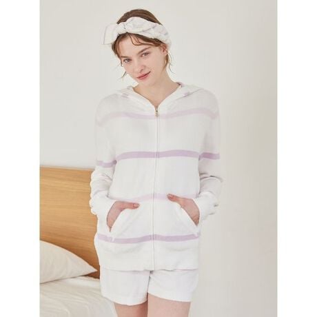 とろけるような肌触りで人気の’スムーズィー’に、ご家庭の洗濯機でお手入れ可能なウォッシャブル機能を備えた人気シリーズです。気分がぱっと明るくなりそうな、カラフルなボーダー柄の薄手ショートパンツ。手軽に洗濯可能なので、汗ばむ季節にも気持ちよくはいていただけます。右後ろにポケット付き。色はミックス、ブルー、ラベンダーの3色をご用意しました。同シリーズのボーダーパーカや雑貨と合わせてお楽しみいただけます。
