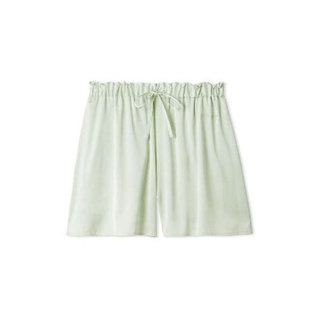 明るいカラーリングに心ときめく、サテンシリーズです。裾のほのかなフレア感がフェミニンなショートパンツは、なめらかな肌触り。左腰にはさりげなくロゴ刺繍を添え、右後ろにポケットも付けました。ウエストの小さなフリル使いが、春の幸せな気分を感じさせます。色は定番のピンクと温かみのあるコーラル、黄み系の爽やかなグリーンをご用意。同シリーズのシャツとコーディネートしてお楽しみください。