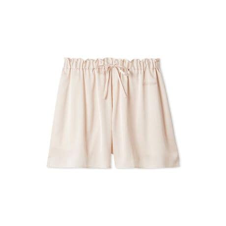 明るいカラーリングに心ときめく、サテンシリーズです。裾のほのかなフレア感がフェミニンなショートパンツは、なめらかな肌触り。左腰にはさりげなくロゴ刺繍を添え、右後ろにポケットも付けました。ウエストの小さなフリル使いが、春の幸せな気分を感じさせます。色は定番のピンクと温かみのあるコーラル、黄み系の爽やかなグリーンをご用意。同シリーズのシャツとコーディネートしてお楽しみください。