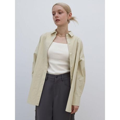 タイムレスな美しさが際立つ、ベーシックなオーバーシャツ。今期は春の装いを鮮やかにするカラー展開が魅力です。肩のラインをややドロップさせ、程よくゆとりを持たせたシルエットに、コントラストの効いたボタンがリラクシーかつモードな印象を演出します。テーパードパンツやIラインスカートなどすっきりとしたボトムとの合わせがバランス◎。季節の変わり目に着る1枚に、羽織りにも活躍する汎用性の高いアイテムです。