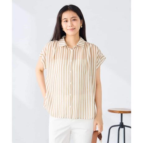 存在感のあるストライプ柄が目を引くフレンチスリーブシャツ。