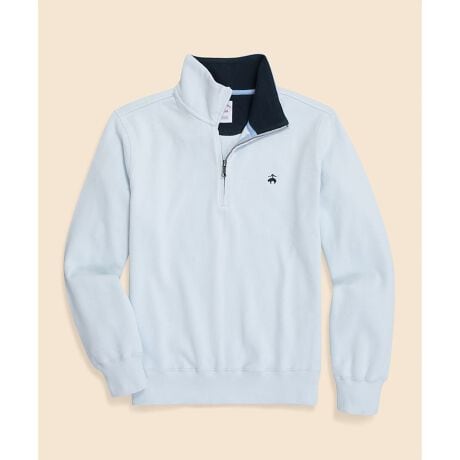 ブルックス ブラザーズを象徴するGF(ゴールデンフリース)ロゴの刺繍をワンポイントにあしらったハーフジップスウェットシャツ
