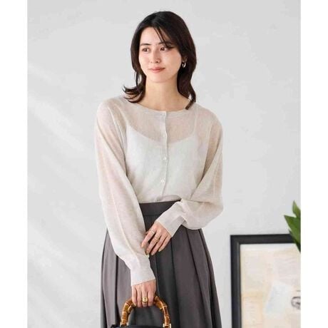 繊細な微光沢感あるシアー素材を使用したクルーネックカーディガン。