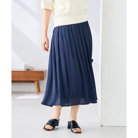 薄手でサラサラタッチのソフトサテンを使用したタックスカート。