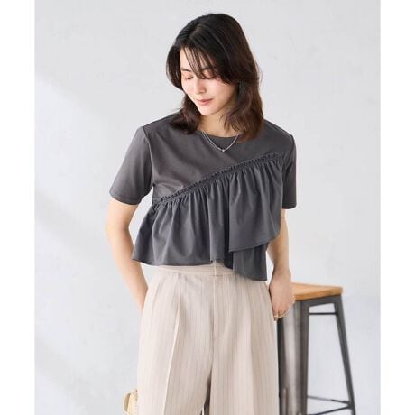 贅沢な細番手の糸を使用した生地と、胸元のフリルは別布を使用しています。