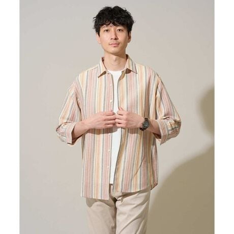 ◆インパクトのあるランダムストライプ素材を使用した初夏から盛夏まで着用できる七分袖シャツ◆