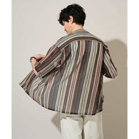 今季トレンドのニットストライプ素材を使用したオープンカラ―シャツ。